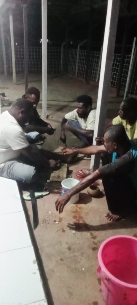 The wayap procession involved the presentation of sagu sep, a traditional dish of the Malind tribe. Sagu sep is a blend of sago mixed with grated coconut and roasted meat, neatly wrapped in woven coconut leaves. This delicacy also served as a communal meal, symbolising the host’s joy in receiving guests. It further represented a gesture of kinship and fraternity extended from the Paia community to the Fyarkin community.